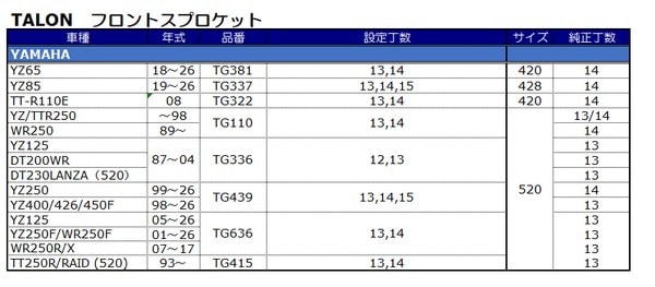 リア 520サイズ YAMAHA車用 TALON スプロケット※アウトレット 送料無料対象外、返品・交換不可