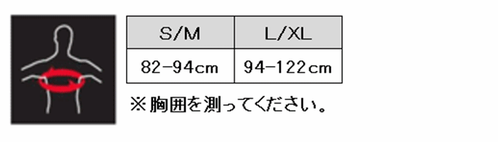 サイズ:S/M(目安 胸囲82-94cm)、L/XL(目安 胸囲94-122cm)